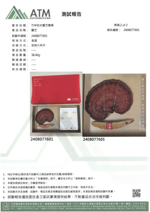 - 檢驗項目:總三萜類, 菇蕈類重金屬-鉛鎘