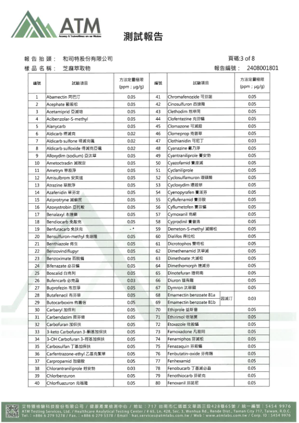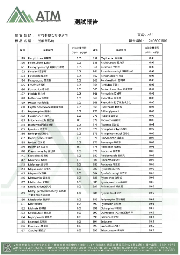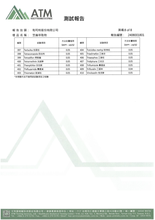 - 檢驗項目:多重農殘檢測套裝 410項(方法五)